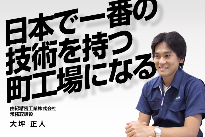 | 由紀精密工業常務取締役、大坪正人。東京大学大学院を卒業し、現在は父の経営する町工場で経営を手伝っている。 彼はその類いまれな頭脳でどのように日本の製造業を革新していくのか。 その延長線上に彼の夢はあるのだろうか。 茅ヶ崎にあるオフィスに伺い、話を聞いた。 |